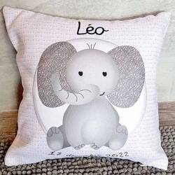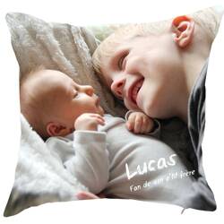 Coussin photo naissance personnalisé avec ourson – Fabrication française