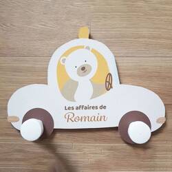 Porte manteau bébé voiture personnalisé – Petit ourson au volant