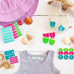 138 étiquettes personnalisées thermocollantes et autocollantes pour marquer à son nom vêtements, chaussures, objets personnels pour la colo