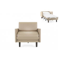 Fauteuil lit Français 1 Place ROLLER 70 LARGE accoudoirs amovibles CUIR - Beige Mastic 0809 - Likoolis