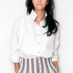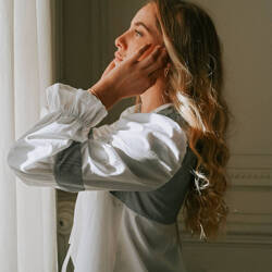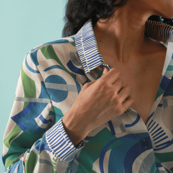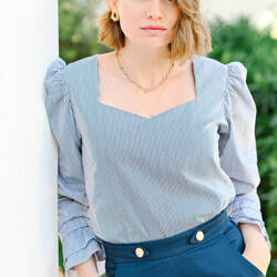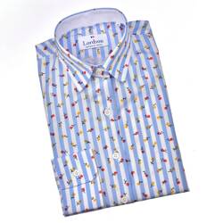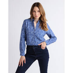 CHEMISIER FEMME LADY RAYURES BLEU CIEL ET FLEURS