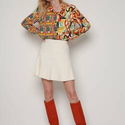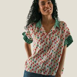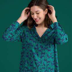 CHEMISIER FEMME LADY BLANC COL VERT A FLEURS