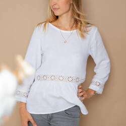 CHEMISIER FEMME LADY BLANC COL A FLEURS