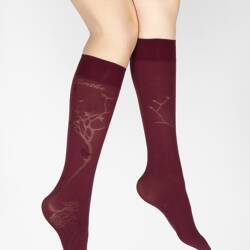 Mi-bas 40D Arbre bordeaux en Maille Dévorée ton sur ton