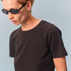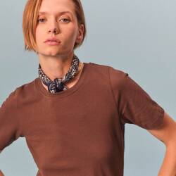 T-shirt Adèle maille piquée col rond brun manches courtes