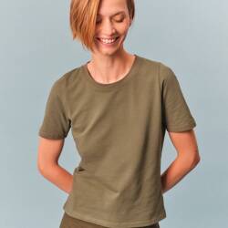 T-shirt Adèle maille piquée col rond vert kaki manches courtes
