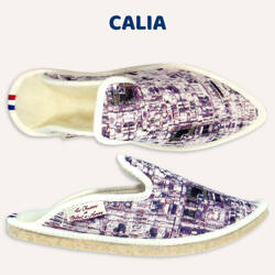 CALIA Babouches Femme Jacquard violine et lavande sur ton écru