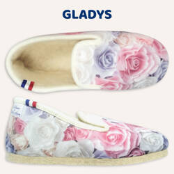 GLADYS Charentaises Femme Motif de roses Semelle feutre laine