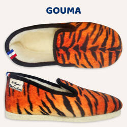 GOUMA Charentaises Femme Rayures Tigre Semelle feutre laine