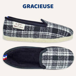 GRACIEUSE Charentaises Femme Motif écossais Semelle feutre laine