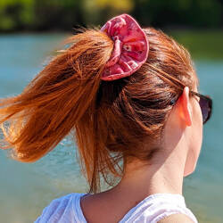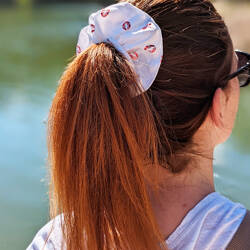 Trousse beauté moumoute blanche doublure petits coeurs rouges