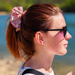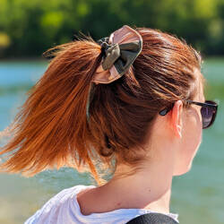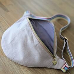 Sac banane moumoute blanche ornée d'un coeur taupe