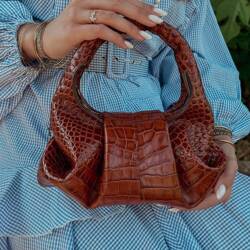 Sac en Cuir Marron Effet Crocodile - Nathalie Taille S