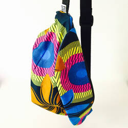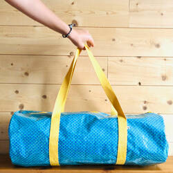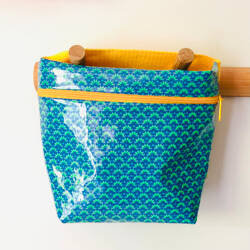 Foulard réversible gaze de coton bleu canard et viscose jaune fleurie