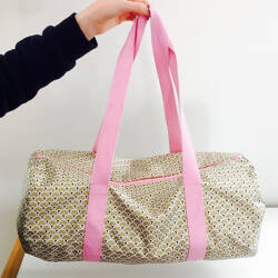 Foulard double gaze de coton kaki à motifs et pompons roses