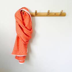 Foulard double gaze de coton corail à motifs et pompons blancs