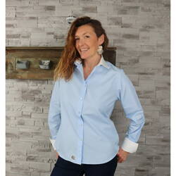Chemise Mao femme Bleu Clair + Col & Poignets Napolitain amovibles Blanc