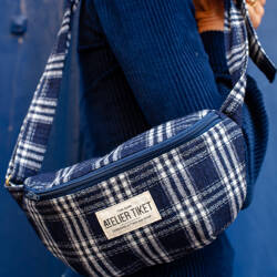 Sac Banane Laine carreaux bleue