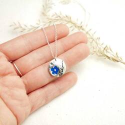 Collier Fleur de Cerisier bleue pervenche en argent 925