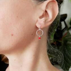 Petites boucles d'oreilles pendantes rondes avec perle rouge Maya en