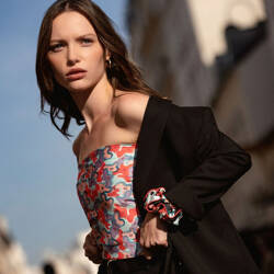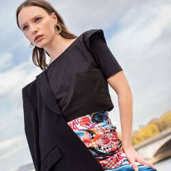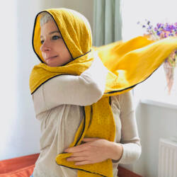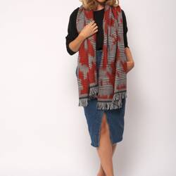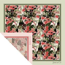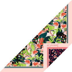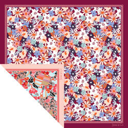 Foulard réversible gaze de coton jaune et viscose rouge fleurie