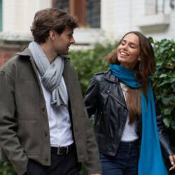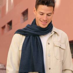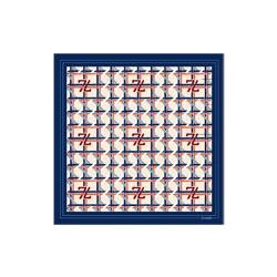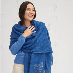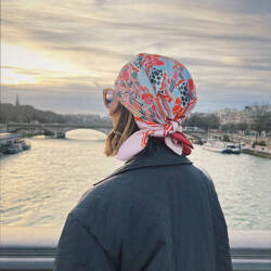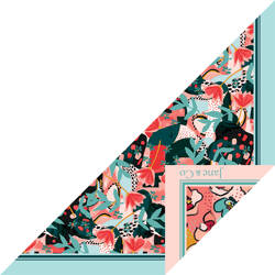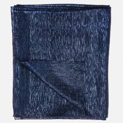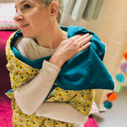 Foulard réversible gaze de coton bleu canard et viscose jaune fleurie