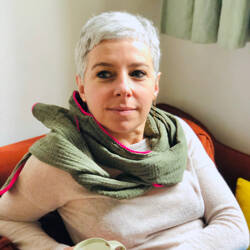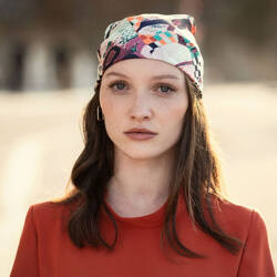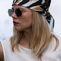 Foulard réversible gaze de coton vert kaki et viscose multicolore géométrique