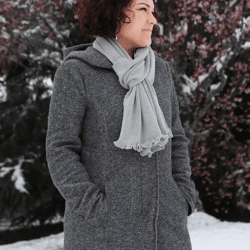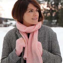 Foulard double gaze de coton kaki à motifs et pompons roses