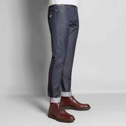 Chino Jeannot Denim Lin bleu brut coupe demi-slim