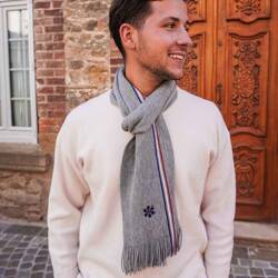 L'écharpe Tricolore en Laine 🐑 Fabriquée en France pour Homme - Grise
