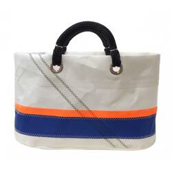 Petit Cabas Voile Bandes Bleu Marine Orange Conchée
