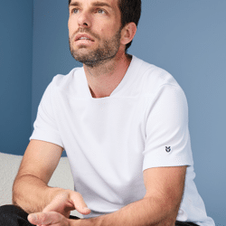 T-shirt épais col signature en Coton Bio - Blanc - Homme