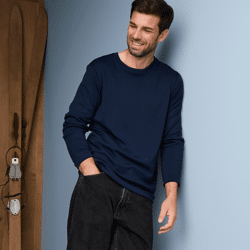 Pull col rond 100% Laine Mérinos - Bleu Minuit - Homme
