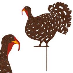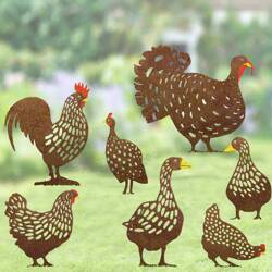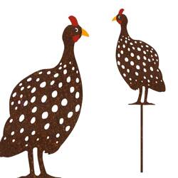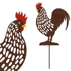 Silhouette poule picore sur tige en acier corten - 27 cm