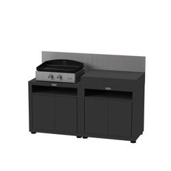 Ensemble Plancha émaillé 400x400 gaz + desserte bois/inox