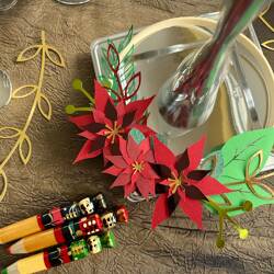 KIT CRÉATIF - Fabriquez une couronne de Noël avec des poinsettias - sur cercle en bois – à coller