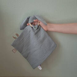 Doudou plat fabriqué en France - Lapin Vert sauge - Hérisson Renne