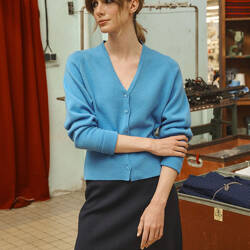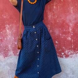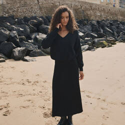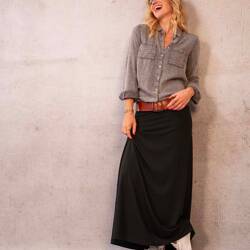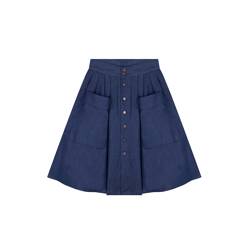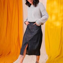 JUPE MI-LONGUE FENDUE 294H taille haute coton bio filidenim indigo brut
