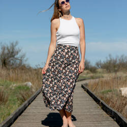 Jupe longue fendue Arum rose - 100% viscose soyeuse
