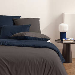Parure bicolore en percale de coton biologique Anthracite/Bleu Nuit - Housse de couette 260x240 cm + taies 50x70 cm