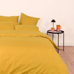 Parure en percale de coton biologique Jaune Ocre - Housse de couette 240x220 cm + taies 65x65 cm