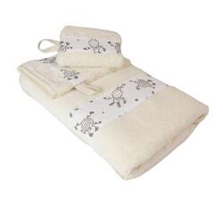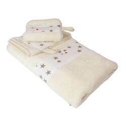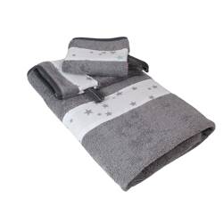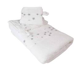 Serviette et 2 gants de toilette en coton éponge ÉTOILE