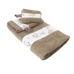 Serviette et 2 gants de toilette en coton éponge TOURNICOQUIN