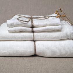 Serviette Nid d'Abeille en Lin Lavé Blanc Craie