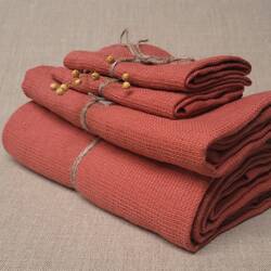 Serviette Nid d'Abeille en Lin Lavé Rouge Figue
