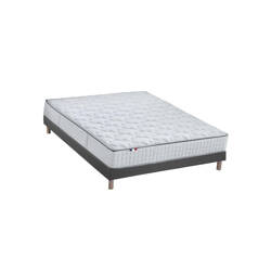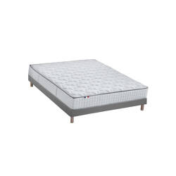 Ensemble Matelas Ressorts Fermes biconiques SPECTOS + Sommier Made in France - Sommier Gris chiné