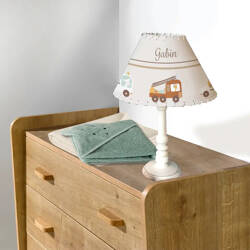 Abat-jour prénom pour bébé avec voitures, camions et moto