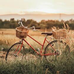 Tableau sur verre 30x30 cm - Tableau vélo dans les blés - Impression sur verre à la finition brillante - Fabriqué en France - Ceanothe