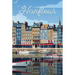 Tableau sur toile 45x65 cm - Tableau illustration port d'Honfleur - Impression sur toile murale décorative avec châssis en Bois - Fabriqué en France -