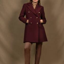 Manteau 3/4 Femme Croisé en Laine Bordeaux - Soeur